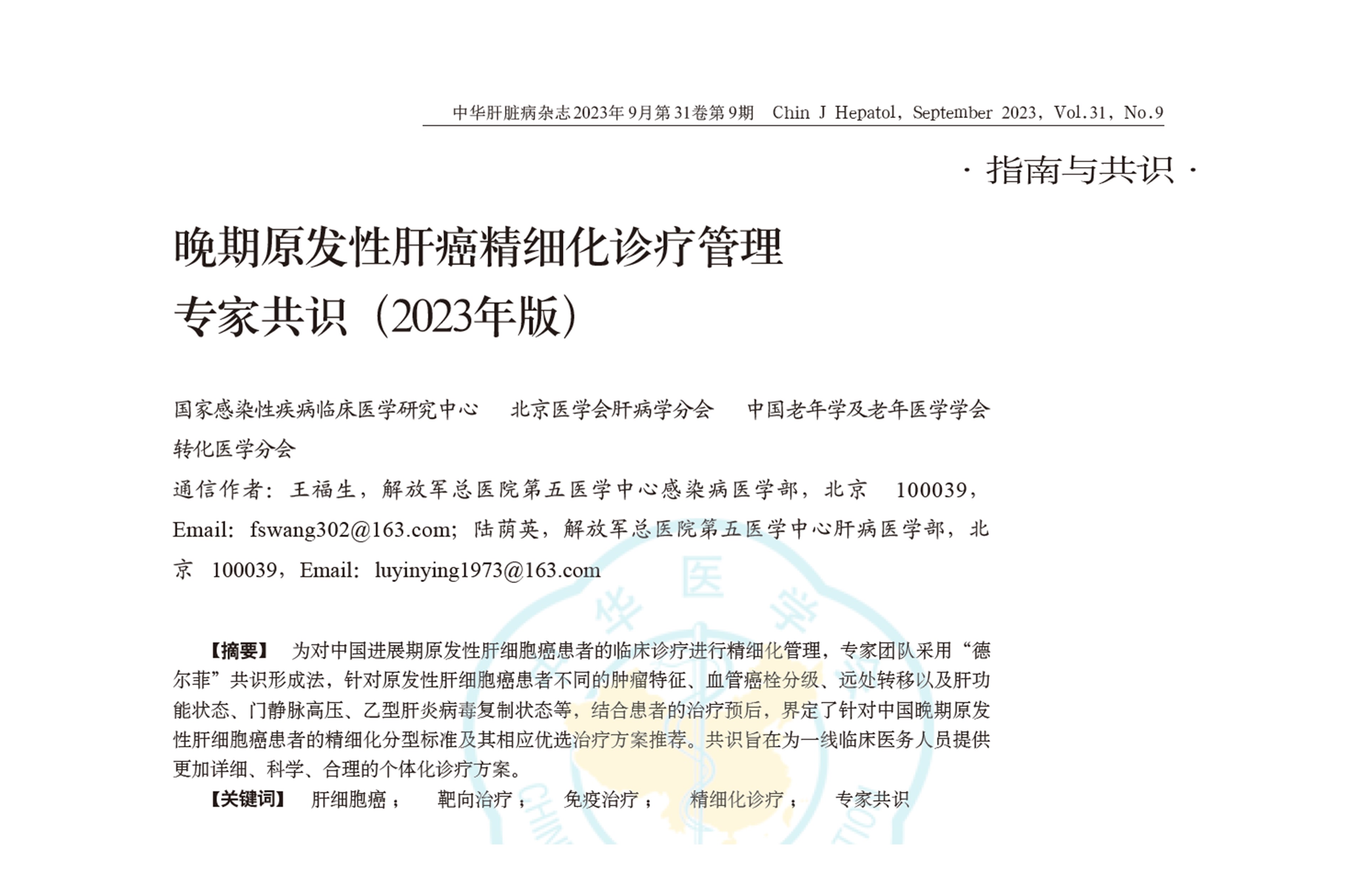 為了對(duì)中國(guó)進(jìn)展期原發(fā)性肝細(xì)胞癌患者的臨床診療進(jìn)行精細(xì)化管理,解放軍總醫(yī)院第五醫(yī)學(xué)中心王福生院士領(lǐng)銜的專家團(tuán)隊(duì)采用“德爾菲”共識(shí)形成法,制定了首個(gè)《中國(guó)晚期原發(fā)性肝癌精細(xì)化診療管理專家共識(shí)(2023年版)》...